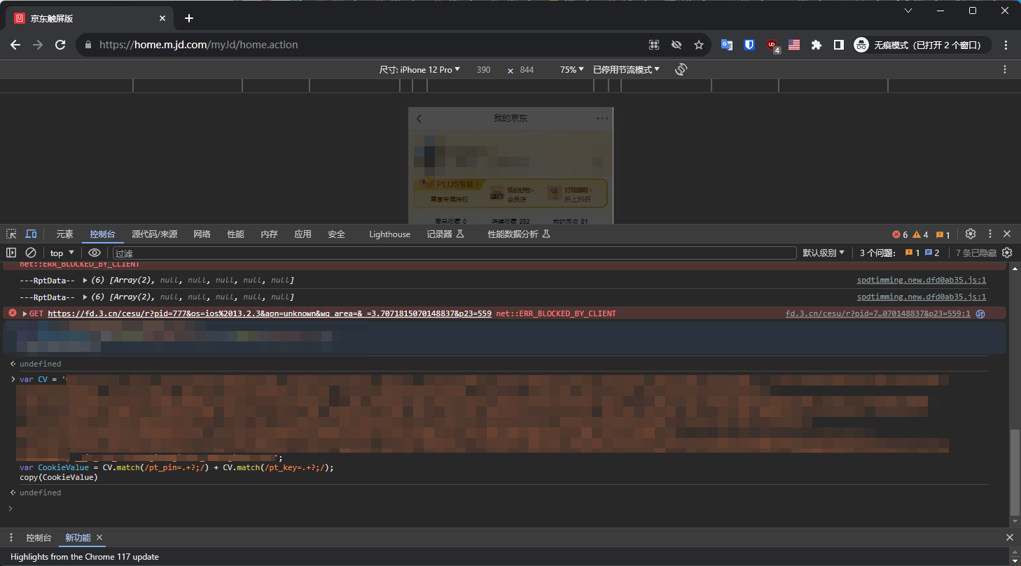 找到cookie并复制出来,此时的cookie比较长,我们只需要pt_pin=xxxx;和pt_key=xxxx;部分的内容即可(注:英文引号;是必要的)。可以用下面的脚本,在Chrome浏览器按F12,console里面输入下面脚本按enter回车,处理好的CK值自动复制到剪切板上